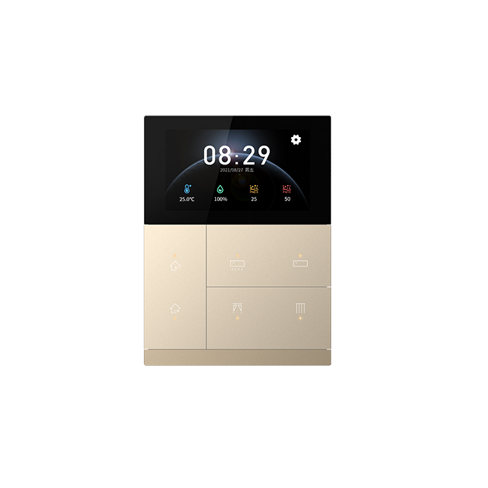 KNX安全3聯(lián)6鍵智能觸摸面板不僅支持屏幕觸控操作,而且支持按鍵操作,帶來雙重體驗(yàn)感的同時(shí),也集成了照明、窗簾、場(chǎng)景、溫控、空調(diào)、新風(fēng)系統(tǒng)、背景音樂、RGB和RGBW調(diào)色、色溫控制等功能,及設(shè)備狀態(tài)顯示,并且內(nèi)置溫度和濕度傳感器,可檢測(cè)本地環(huán)境溫度和濕度,滿足大部分的日常應(yīng)用。