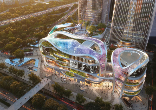 形如花瓣的商業(yè)中心裙房樂薈中心,有西北最大的室內(nèi)綠色生態(tài)疊水景觀和高達(dá)36m的巨型水晶瀑布,是集四季、山水、綠植、花香、蟲鳴、鳥叫為一體的“森林氧吧”。在夜景泛光照明的烘托下,南飛鴻充分展現(xiàn)創(chuàng)新型商業(yè)綜合體的獨(dú)特氣質(zhì),拔高城市居民審美的同時(shí),也刷新著西安商業(yè)的新高度。